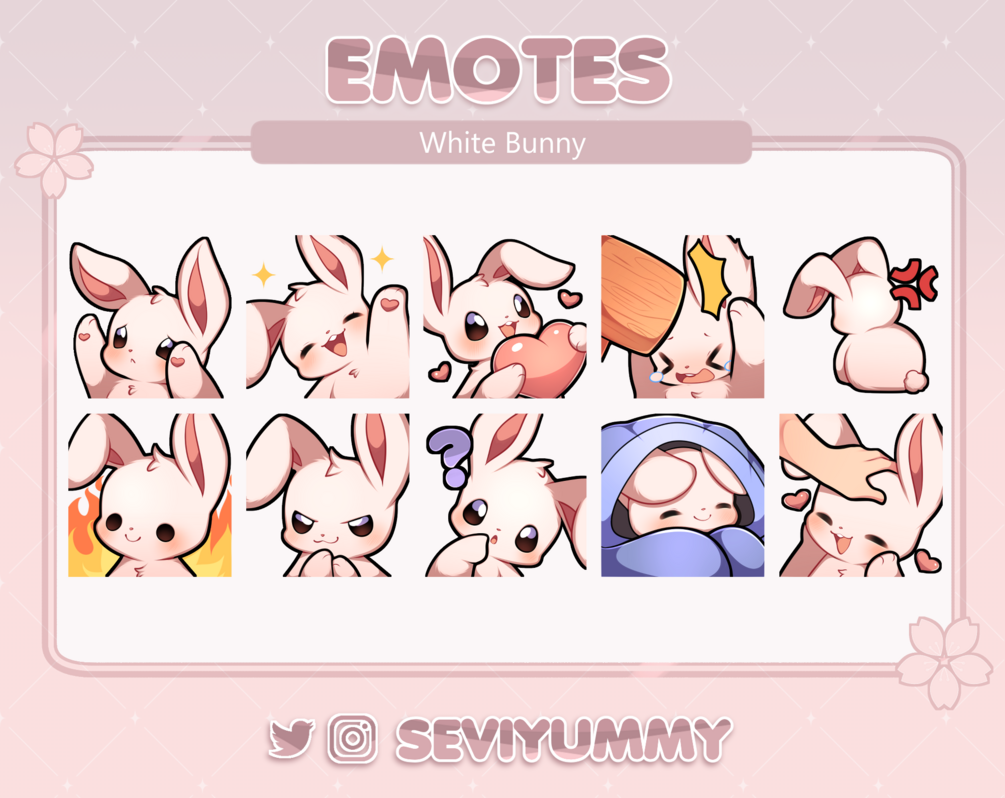 Set of 10 White Bunny Emotes for Discord and Twitch